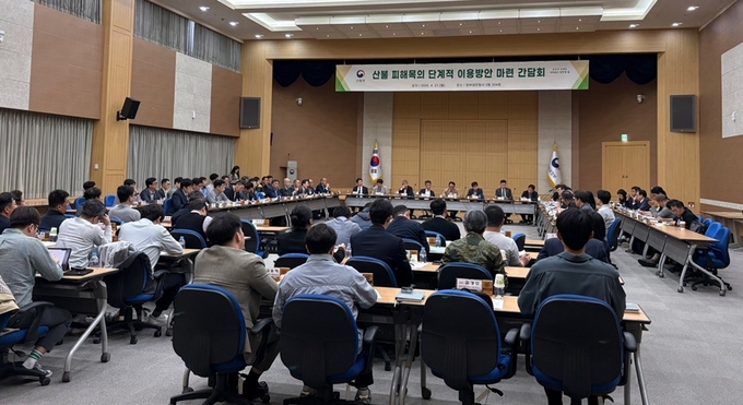 산림청(청장 임상섭)은 21일 정부대전청사에서 경북·경남·울산 지역 산불로 발생한 피해목의 효율적 활용을 위한 간담회를 개최했다고 밝혔다.