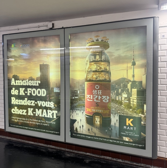 이번 광고는 파리 중심가 생탄느 거리(4-8 rue Sainte-Anne, 75001 Paris)에 본점을 둔 한국 식품 전문 유통사 ‘K-MART’(대표 권순근)가 농림축산식품부와 한국농수산식품유통공사(aT)의 해외 판촉 지원을 받아 진행한 K-푸드 홍보 캠페인의 일환이다. K-푸드의 상징적 이미지를 담은 첫 광고 모델로 샘표 진간장이 선정됐으며, 광고는 파리 주요 상권인 프랭클린 D. 루스벨트역(1호선)과 샤를 미셸역(10호선)에 설치됐다.