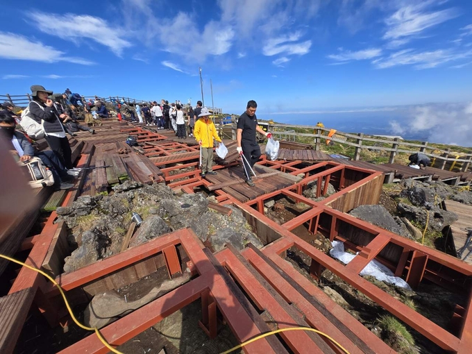 세계유산본부 직원과 한라산지킴이, 산악안전대 등 민간단체가 함께 참여해 탐방로와 휴식 공간 등 곳곳에 방치된 쓰레기를 수거하며, 자연 그대로의 한라산을 지키기 위한 활동을 이어간다.