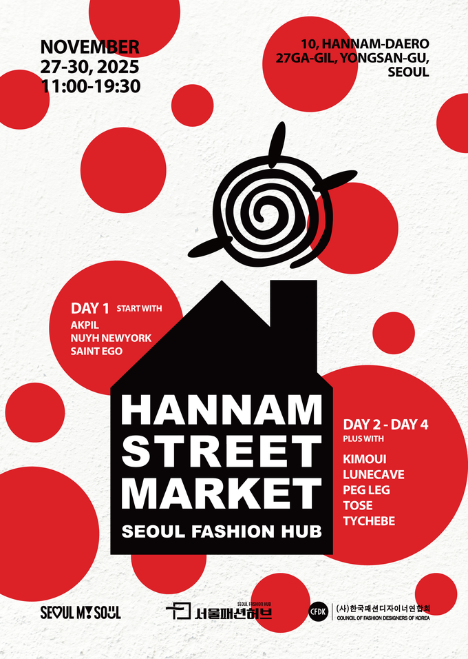 서울시의 지원을 받는 서울패션허브가 11월 27일부터 30일까지 용산구 한남동 데패뉴에서 서울패션허브 팝업스토어를 연다. 이번 행사에는 국내 유망 신진 디자이너 브랜드 8개가 참여하며 브랜드별로 최대 70퍼센트까지 할인 혜택이 제공될 예정이다.