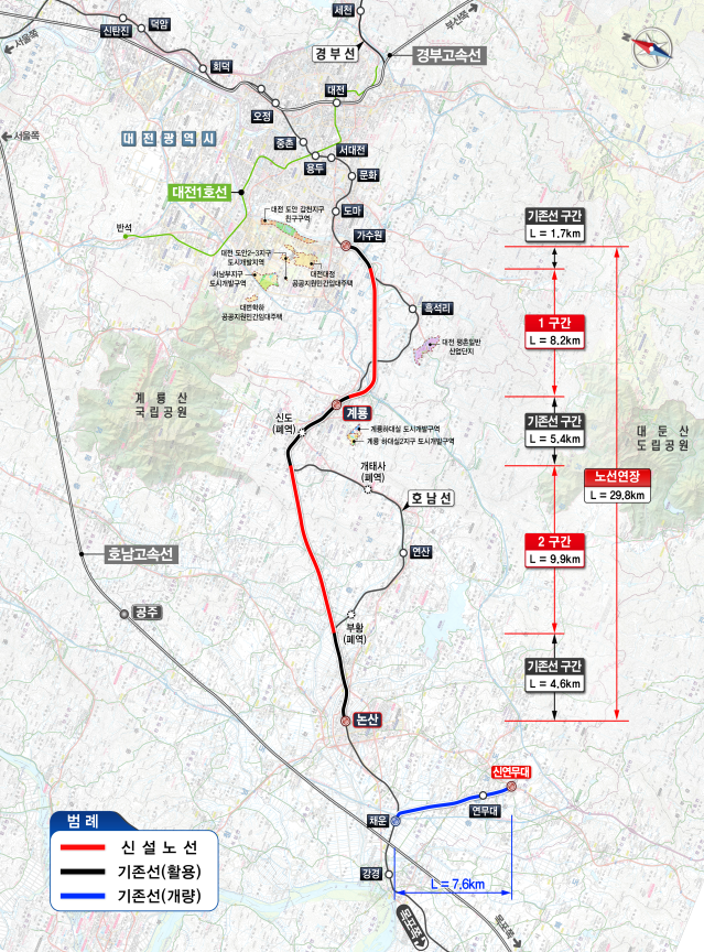 * (노선) 신설 18.1km, 기존선 활용 11.7km / (정거장 6개) 신설 1개(신연무대), 활용 5개