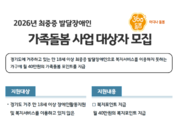 경기도가 2026년 최중증 발달장애인 가족돌봄 사업 참여 가구 145곳을 12월 2일까지 모집한다. 도전적 행동이 심하거나 일상생활의 독립성이 크게 제한돼 통합적 돌봄이 필요한 발달장애인을 지원하기 위한 사업이다. 이 사업은 경기도의 360도 돌봄체계 중 ‘어디나 돌봄’에 해당한다. 지난해 4월 처음 시행된 이후 매달 210가구에 월 40만 원의 돌봄포인트를 지원하며 생필품 구입, 여가활동 등 다양한 영역에서 장애인과 가족의 부담을 덜어왔다. 2026년 지원 대상은 경기도 거주자 중 복지관 이용이나 직업재활서비스 등 기존 복지 서비스를 이용하지 못해 돌봄 사각지대에 놓인 만 18세 이상 발달장애인이다. 선정되면 월 40만 원의 돌봄포인트를 1년간 받을 수 있으며, 지속적인 모니터링을 통해 필요 서비스와의 연계도 지원된다. 모집 인원은 총 145명이다. 올해는 작년과 달리 시군별로 인원을 배분해 31개 모든 시군에서 고르게 대상자가 선정되도록 했다. 신청은 11월 18일부터 12월 2일까지 주소지 읍면동 행정복지센터에서 접수할 수 있다. 도전적 행동 여부와 기존 서비스 이용 여부 등 기준에 따라 선정심의회가 심사하며, 도의회 예산 의결이 완료된 이후 최종 확정